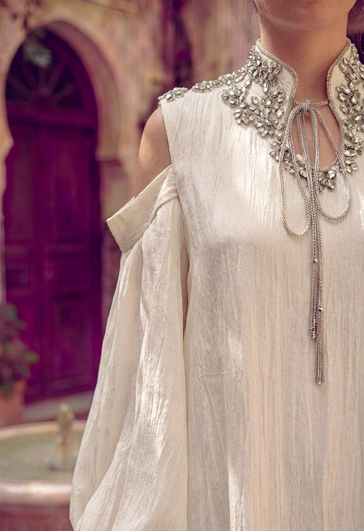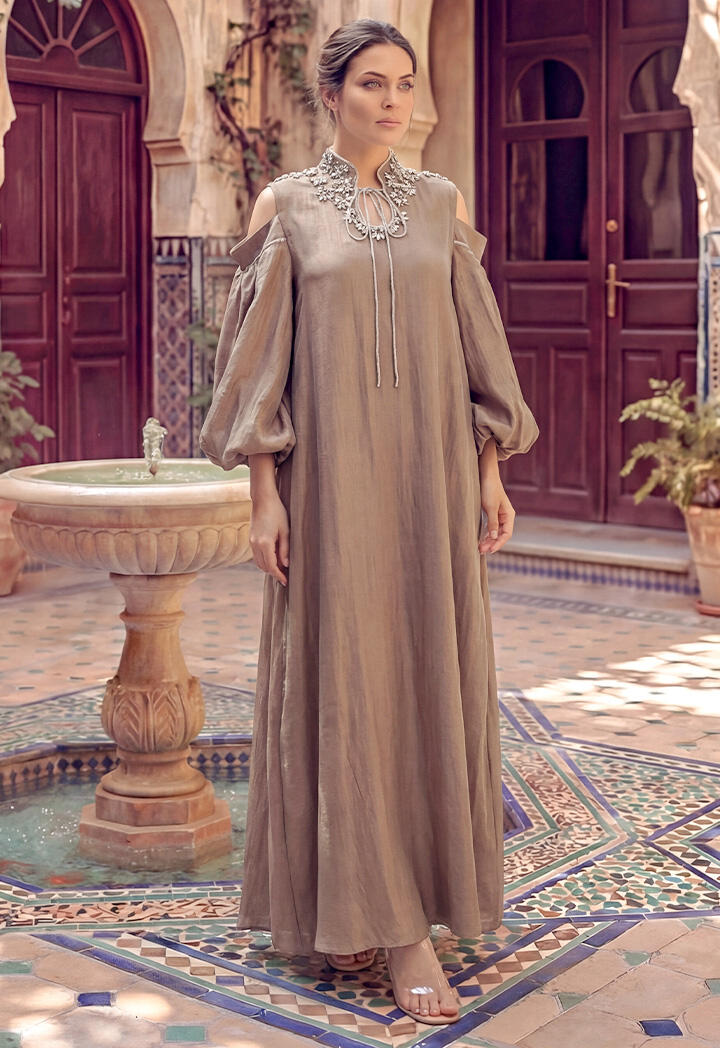 الرئيسيةدراعة تفته ماكسي بأكمام مطرزة دراعة تفته ماكسي بأكمام مطرزة 0الوصفدراعة ماكسي من قماش التفته بتصميم أنيق مستوحى من أجواء القرقيعان، تتميز بياقة مطرزة فاخرة تضيف لمسة احتفالية راقية، مع قصة انسيابية وأكمام واسعة بتفاصيل عصرية تمنحك إطلالة مميزة .اللونأخضر فاتحبيج فاتحبرونزالقياسM-38L-40XL-422XL-443XL-46