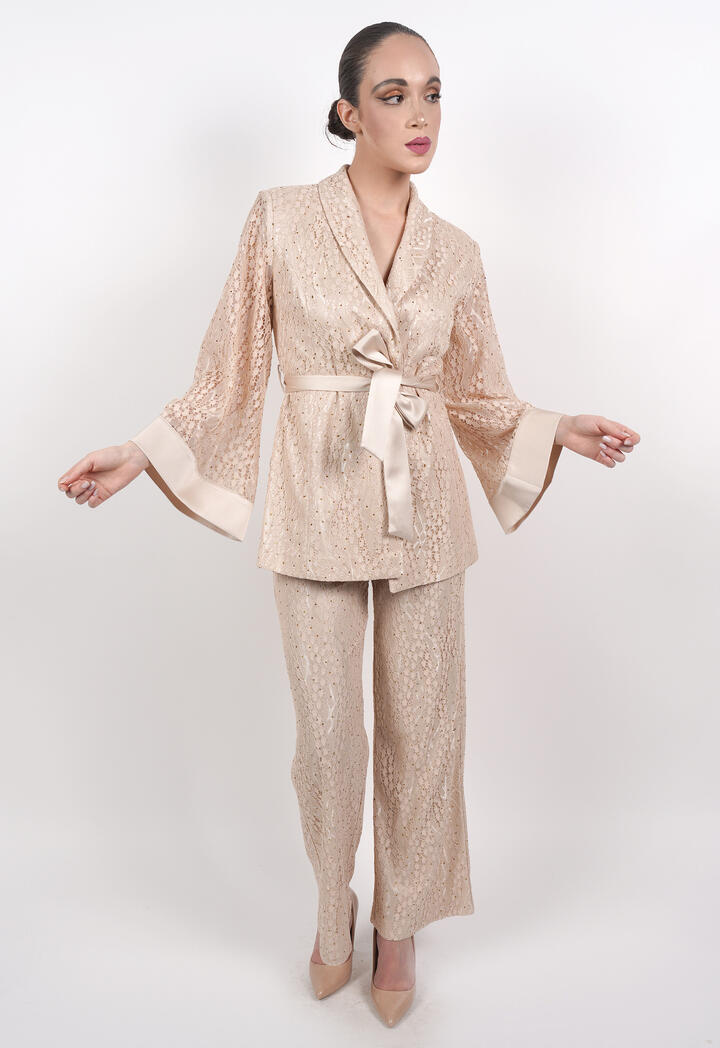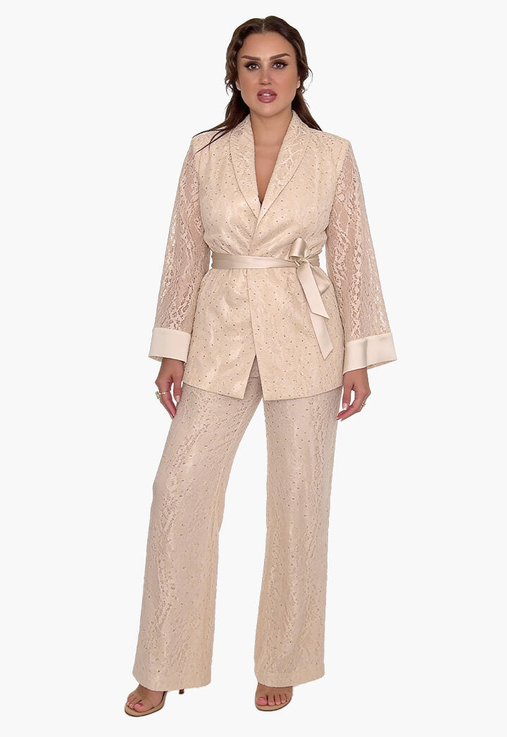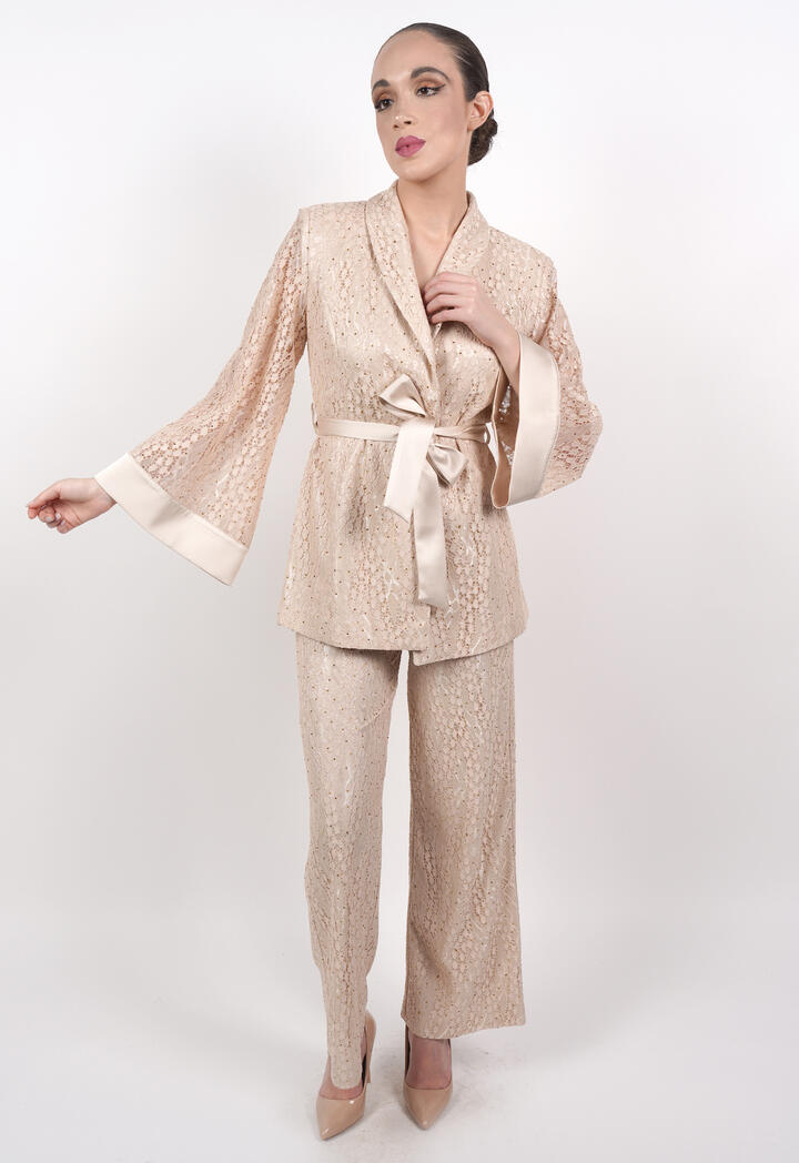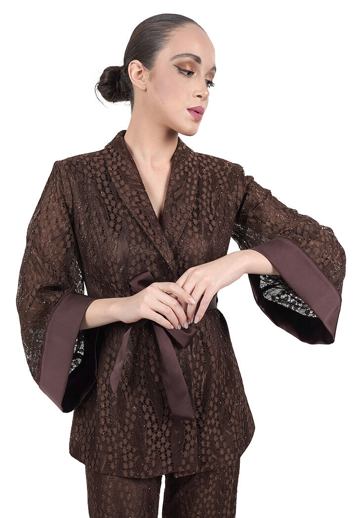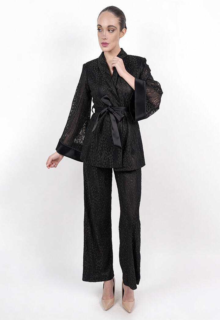 الرئيسيةبليزر دانتيل بأكمام شفافة وحزام خصربليزر دانتيل بأكمام شفافة وحزام خصر0الوصفبليزر دانتيل أنيق بتفاصيل فاخرة، بأكمام طويلة شفافة واسعة وحزام خصر ساتان يحدد القوام، ليمنحك إطلالة عصرية وراقية مثالية للمناسبات والسهرات.اللونبنيأسودبيجالقياسM-38L-40XL-422XL-44