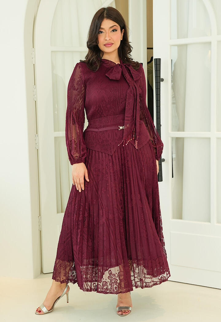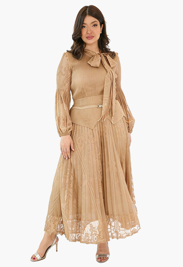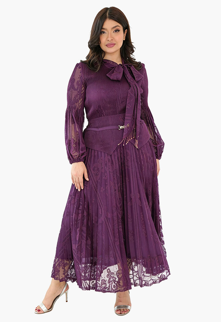 الرئيسيةطقم دانتيل بتنورة ميدي وبلوزة بربطة عنقطقم دانتيل بتنورة ميدي وبلوزة بربطة عنق0الوصفطقم أنيق من الدانتيل الفاخر مكوّن من تنورة ميدي وبلوزة بأكمام طويلة شفافة مع ربطة عنق أنثوية، مزوّد بحزام خصر يبرز القوام بأسلوب أنيق.اللونبنيبيجبنفسجيعنابي