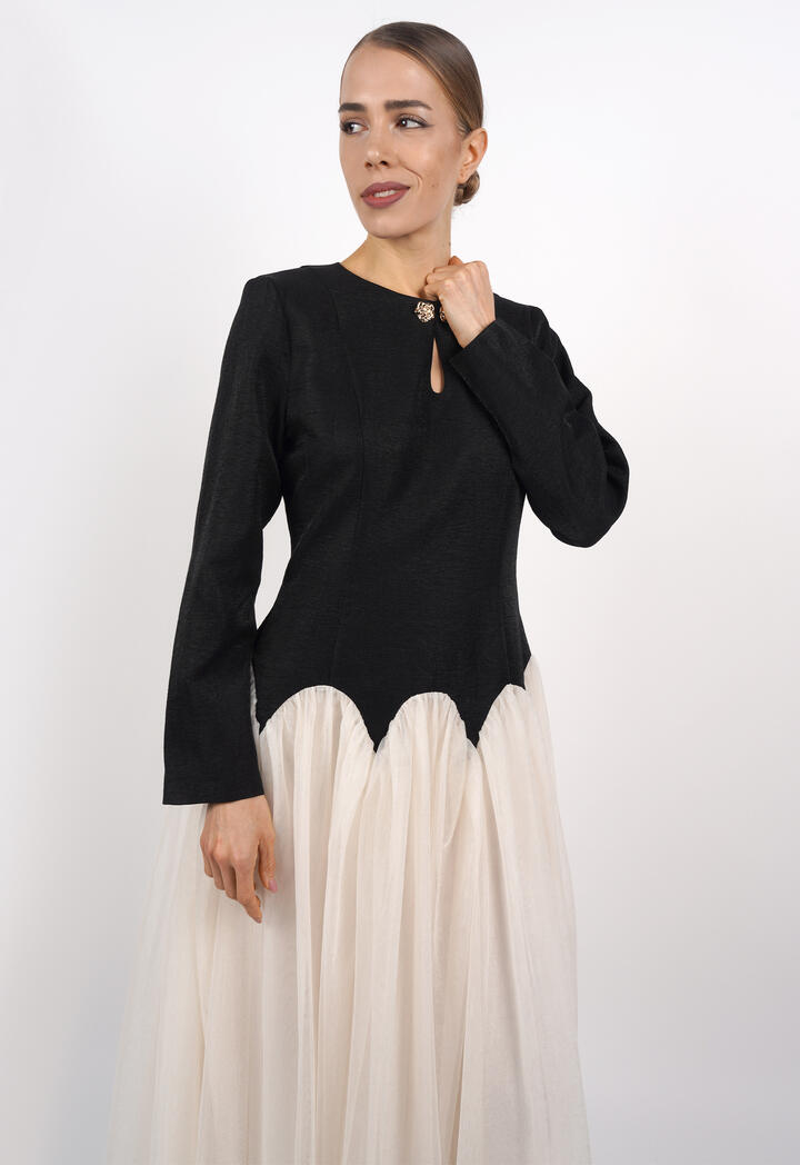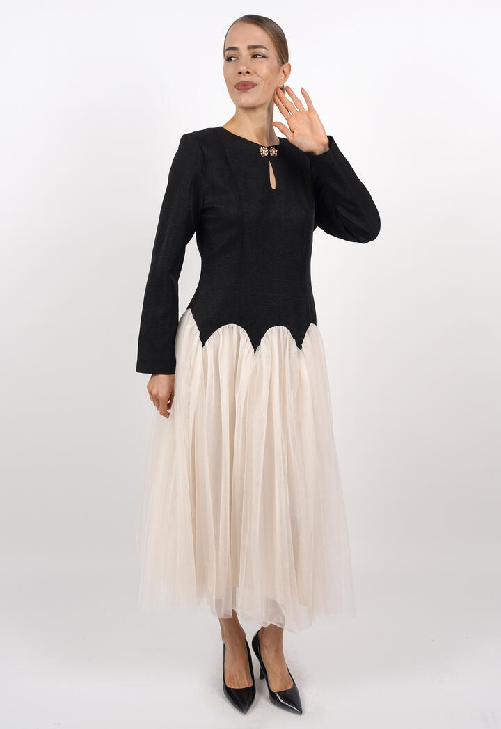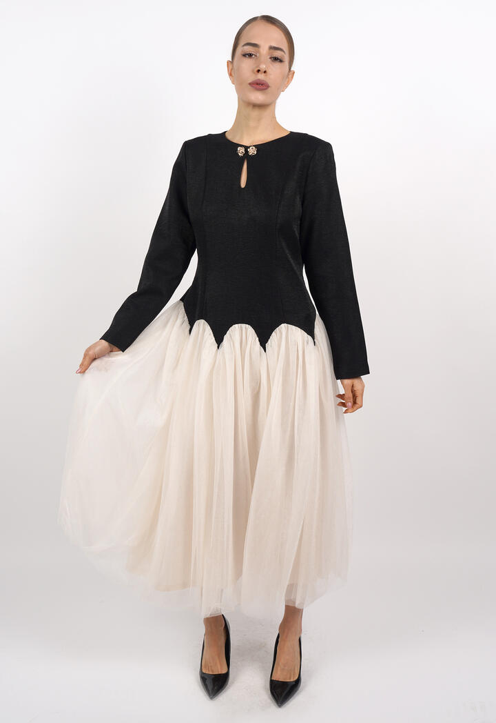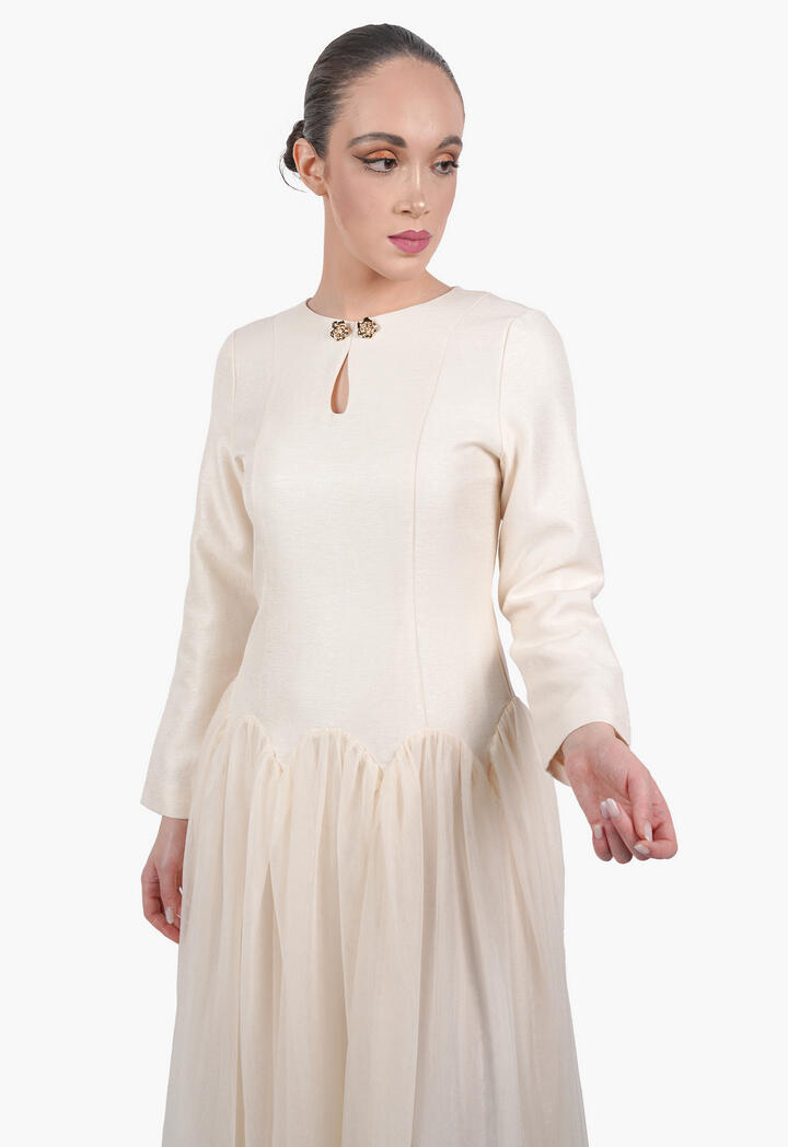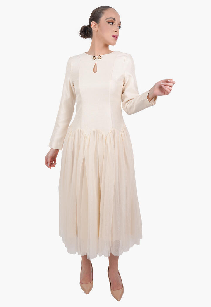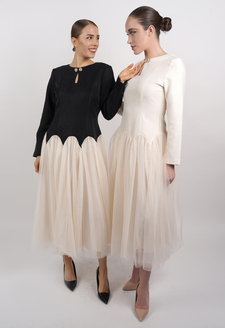 الرئيسيةفستان ميدي بتصميم طبقات تول وأكمام طويلةفستان ميدي بتصميم طبقات تول وأكمام طويلة0الوصففستان ميدي أنيق بتصميم عصري يجمع بين الجزء العلوي الكلاسيكي بقصة مستقيمة والأكمام الطويلة، وتنورة من طبقات التول الناعمة التي تضيف حركة وأنوثة.اللونكريمىوردياسود - سكرىالقياسS-36M-38L-40XL-422XL-443XL-46