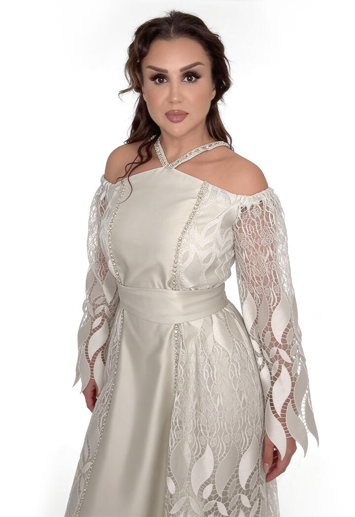 الرئيسيةفستان ماكسي دانتيل بأكمام شفافة وتصميم أوف شولدرفستان ماكسي دانتيل بأكمام شفافة وتصميم أوف شولدر0الوصففستان ماكسي أنيق يجمع بين الساتان الناعم والدانتيل الفاخر، بتصميم أوف شولدر مع أكمام طويلة شفافة وحزام خصر يبرز القوام،خيار مثالي للمناسبات والسهرات.اللونكريمىموكافستقيالقياسS-36M-38L-40XL-42