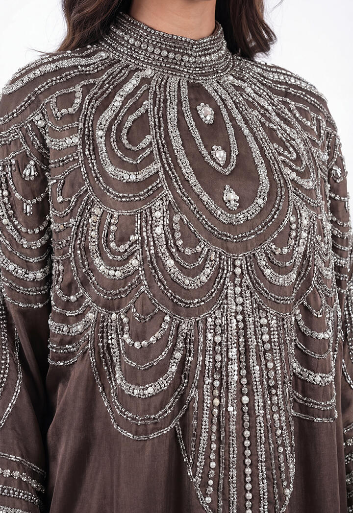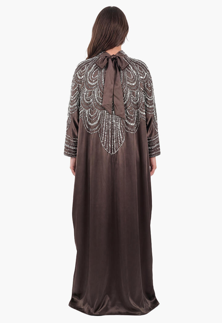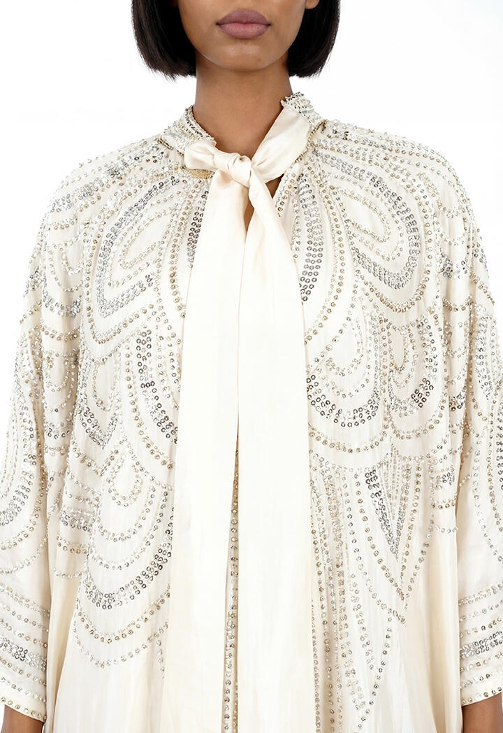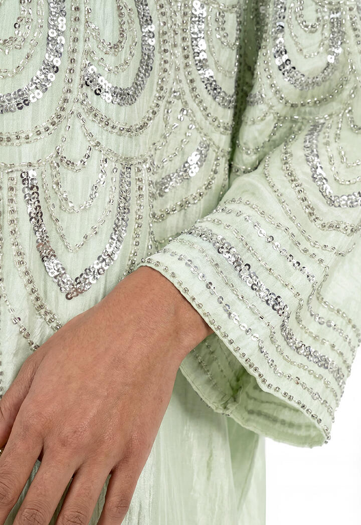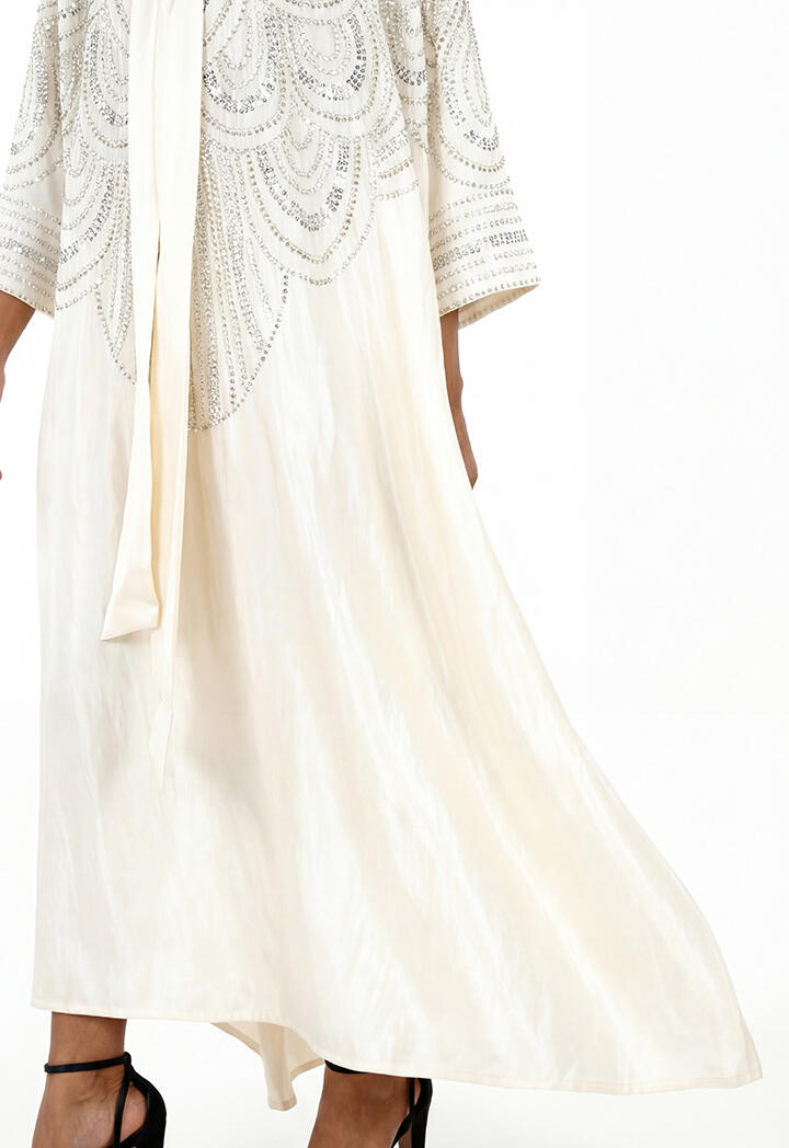 الرئيسيةدراعة ماكسي مطرزة باللؤلؤ والكريستالدراعة ماكسي مطرزة باللؤلؤ والكريستال0الوصفدراعة ماكسي بياقة عالية أنيقة، مزينة بتطريز كثيف من اللؤلؤ والكريستال بتفاصيل هندسية راقية، تمنحك إطلالة ملكية ملفتة، مثالية للسهرات الرمضانية.اللونموكاكريمىأخضر فاتحكحليعنابي