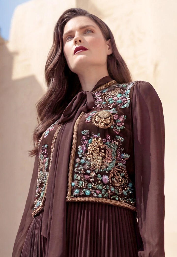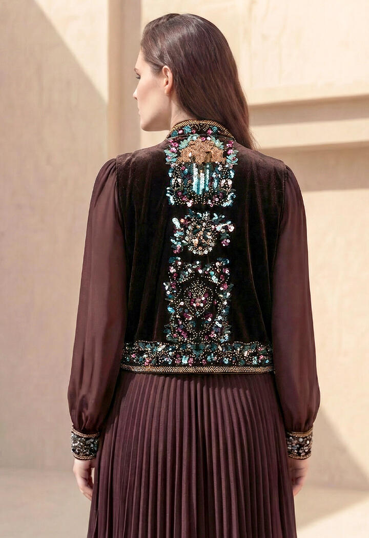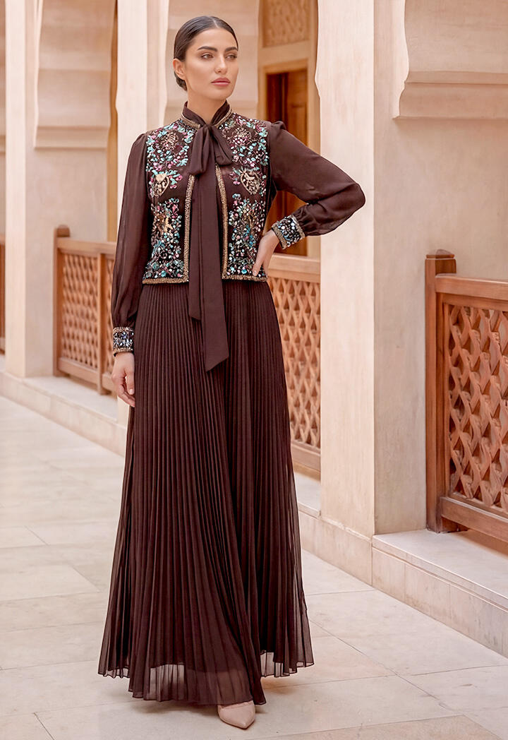 الرئيسيةدراعة شيفون مكسرة مع جيليه مطرزدراعة شيفون مكسرة مع جيليه مطرز0الوصفدراعة شيفون أنيقة بتصميم مكسّر يمنحك انسيابية راقية، مرفقة بجيليه مطرز بتفاصيل فاخرة تضيف لمسة تراثية عصرية، مثالية لإطلالات القرقيعان والمناسبات الرمضانية بأسلوب أنثوي مميز.اللونأسودبنيالقياسM-38L-40XL-422XL-443XL-46