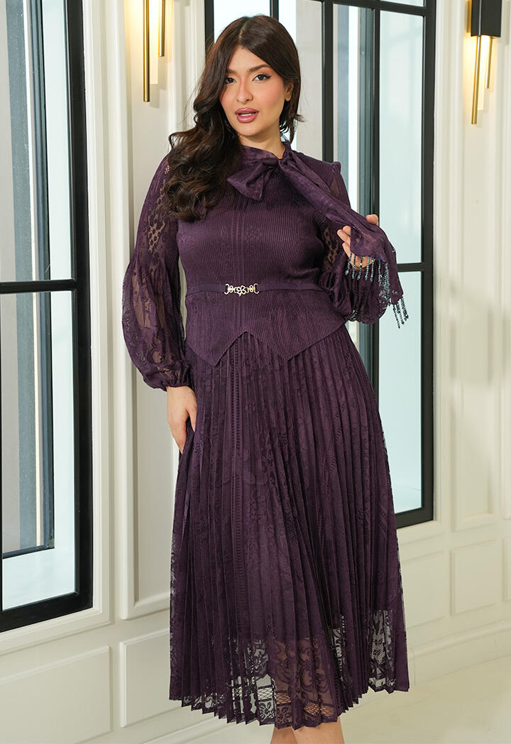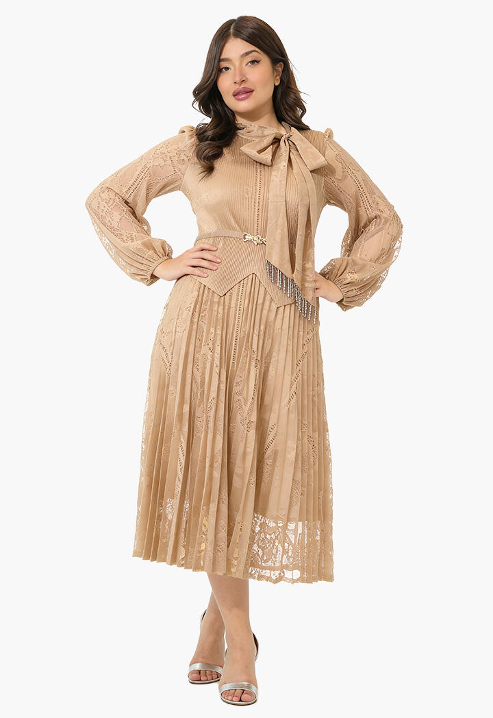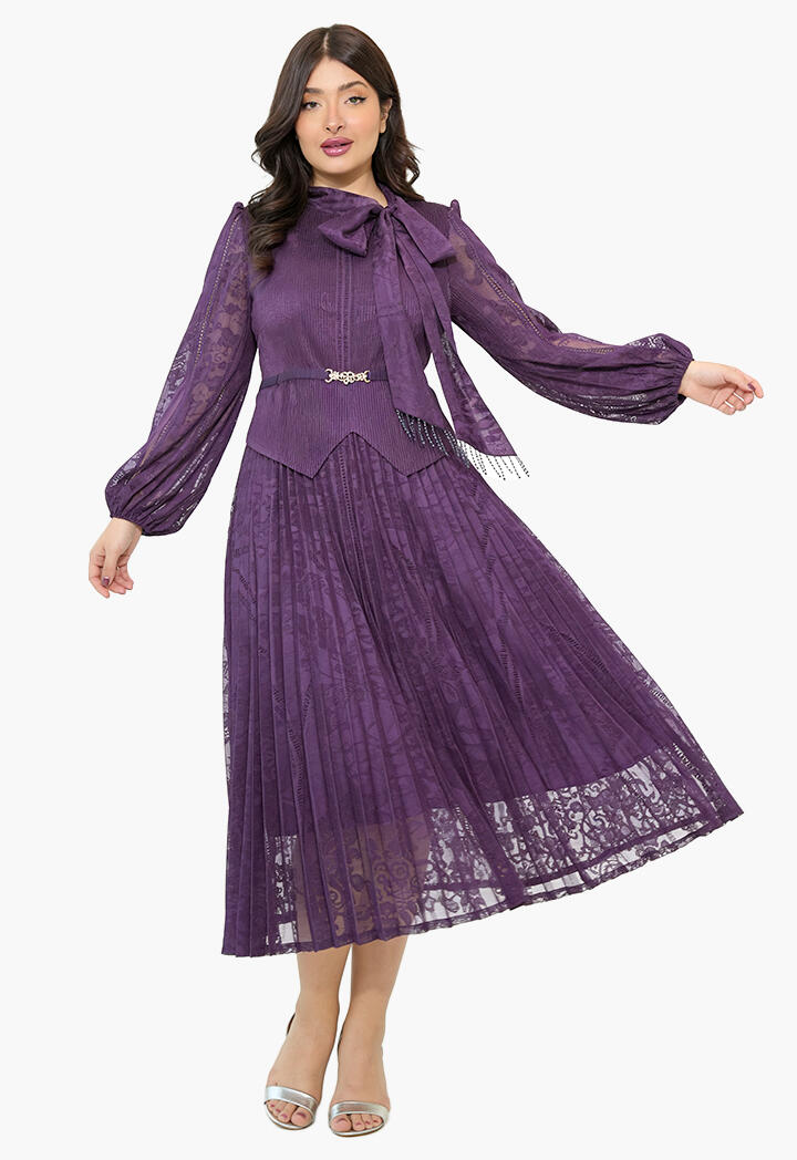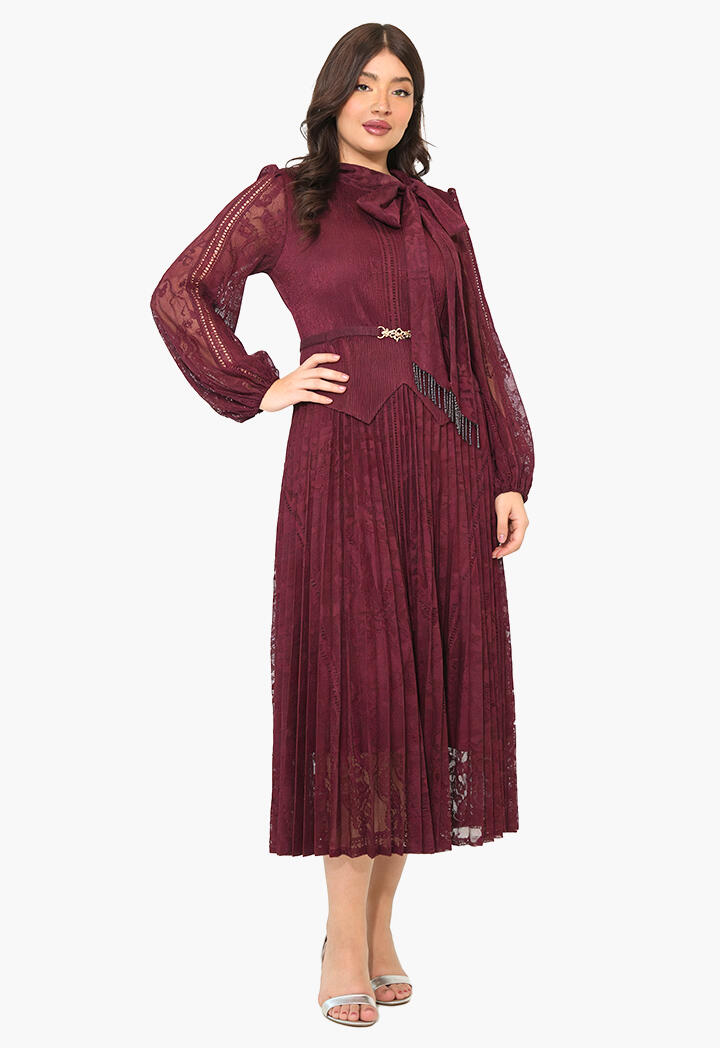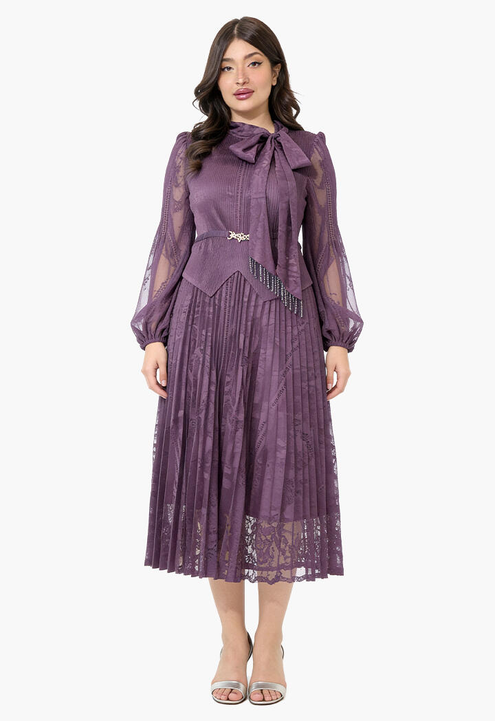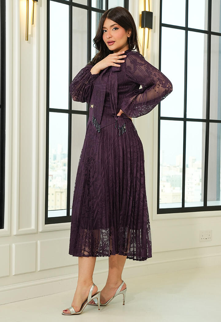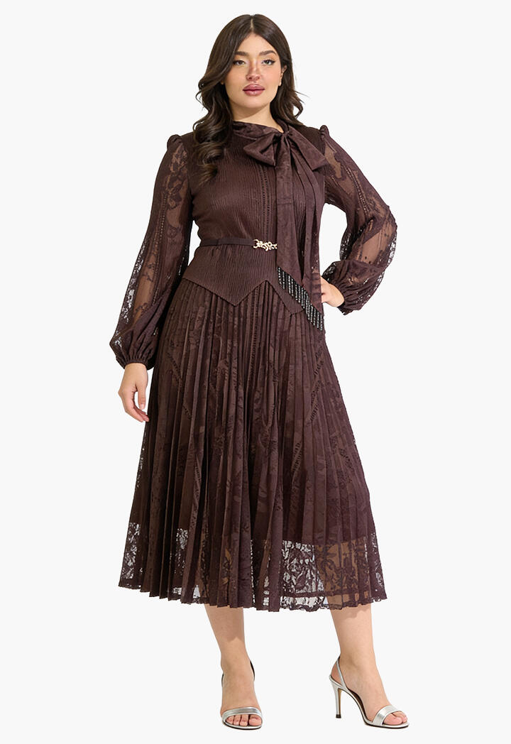 الرئيسيةفستان ميدي دانتيل بطيات ناعمةفستان ميدي دانتيل بطيات ناعمة0الوصففستان ميدي بتصميم أنثوي راقٍ من الدانتيل، يتميز بتنورة مكسرة مع ياقة بربطة عنق وأكمام طويلة شفافة وحزام يبرز جمال الخصر لإطلالة مثالية في المناسبات.اللونبنيبيح غامقبنفسجيعنابي