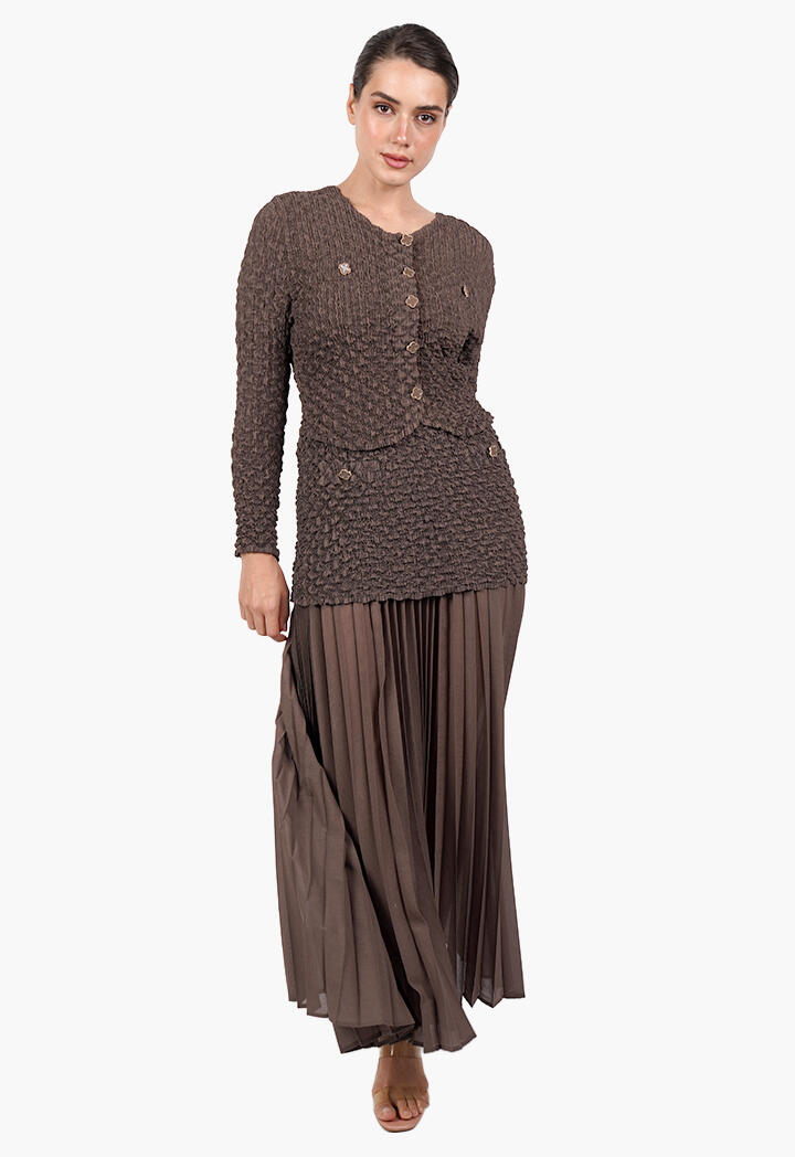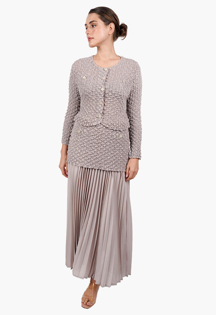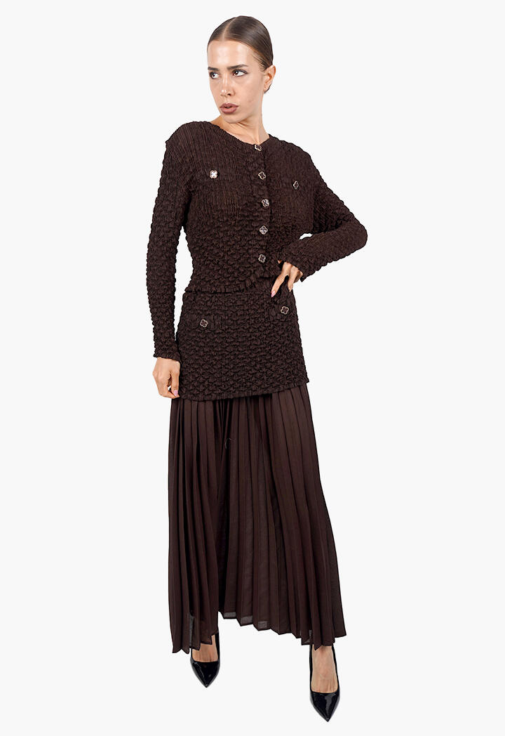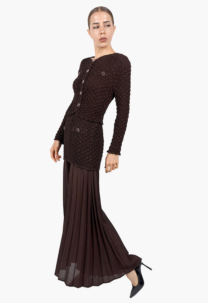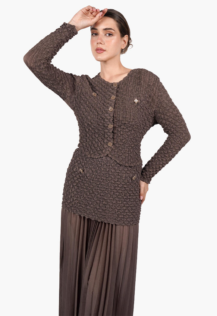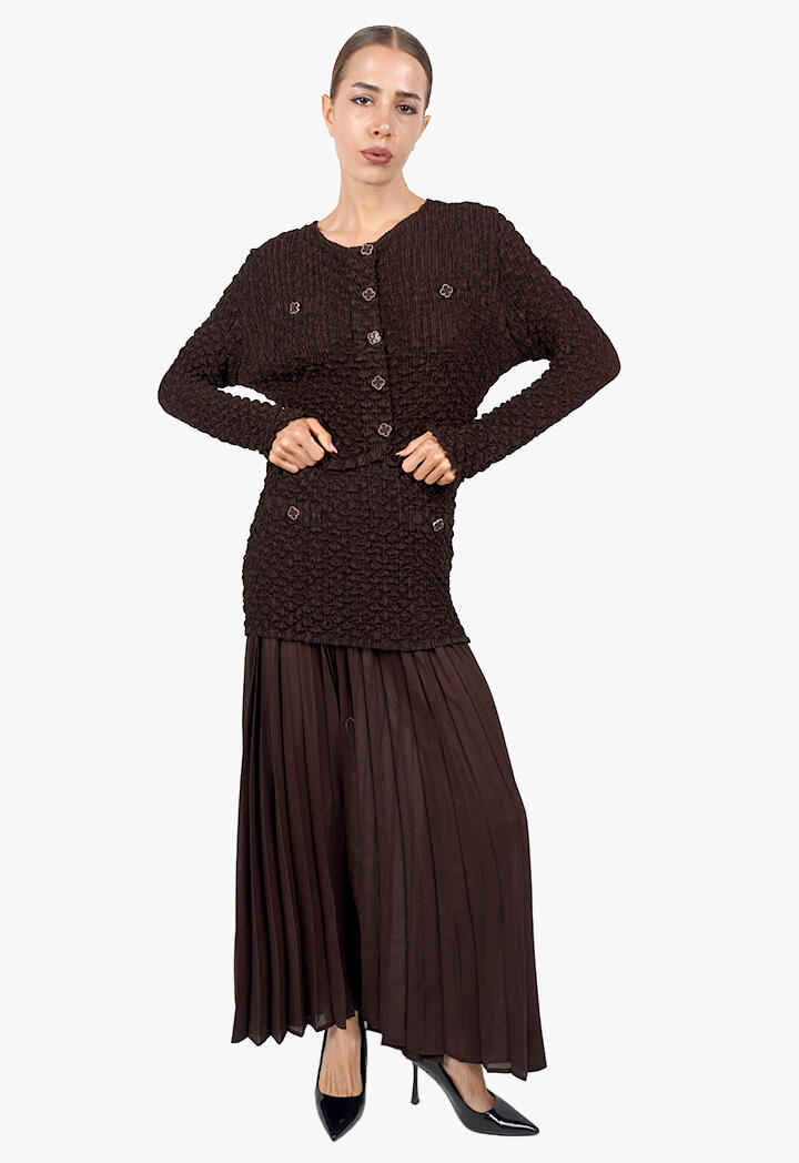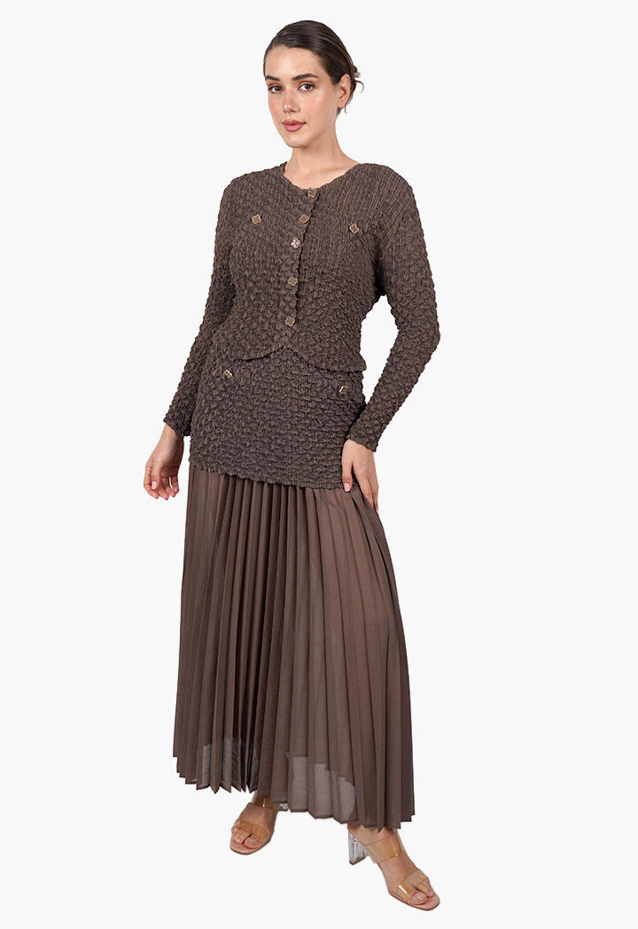 الرئيسيةطقم ماكسي بتنورة مكسرة وجاكيت قصيرطقم ماكسي بتنورة مكسرة وجاكيت قصير0الوصفطقم أنيق من قماش سترتش يتكوّن من تنورة ماكسي بتفاصيل شيفون مكسرة مع جاكيت قصير بياقة دائرية و أزرار ذهبية ، تصميم فري سايز بقماش مرن يناسب القياسات الكبيرة.اللونموكابنيبيجبنفسجي